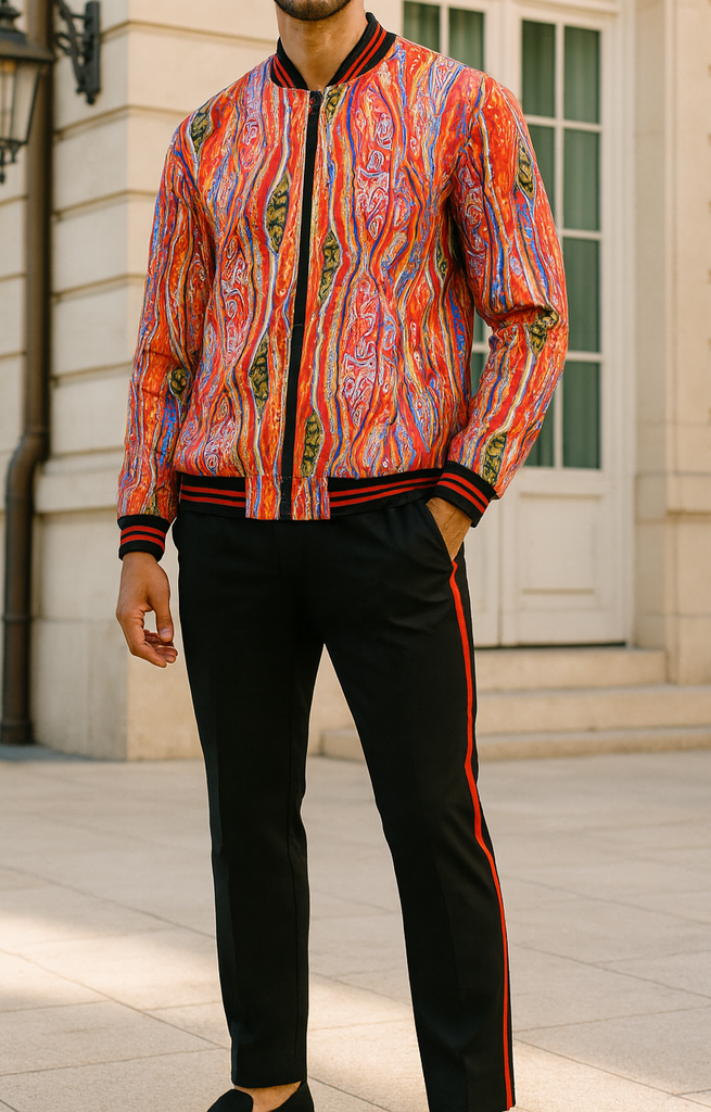 Mens Designer Stacy Adams Cool Bright Red-Multi Color Track Suit Slim Fit 2756