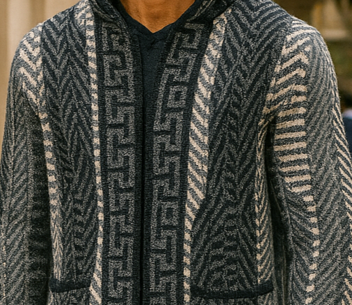 Mens SilverSilk Black Gray Greek Key Thick Knit Sweater Jacket w/ Hoody 82401