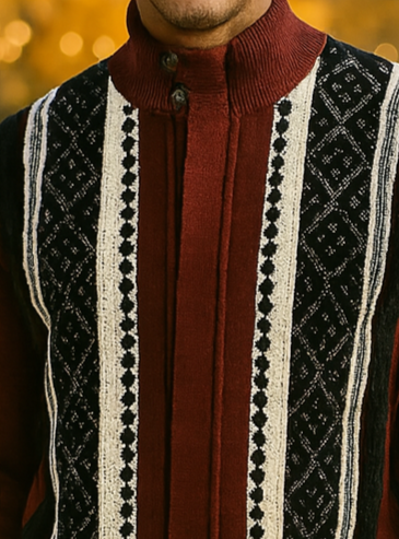 Mens SilverSilk Sophisticated Wine White Blk Knit Zip Jacket 11007