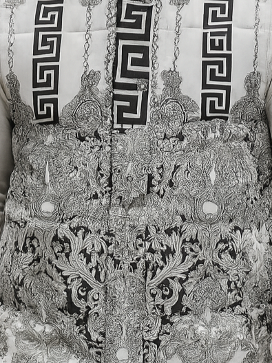 Mens SilverSilk Stylish Puffy Vest Black White Filigree Design 65094