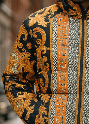Mens SilverSilk Stylish Rust Multi-Color Puffy Jacket w/ Hoody 65091