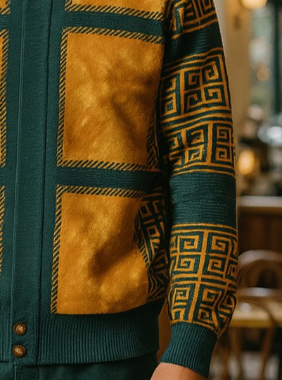 Mens SilverSilk Hunter Green Gold Faux Leather Patch Knit Zip Jacket 11012