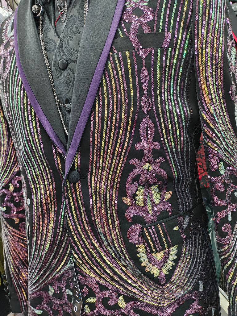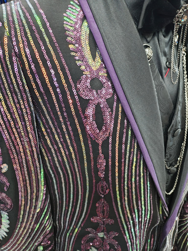 Mens Magnificent Black Purple Sequin Formal Dress Jacket BBT3616-1