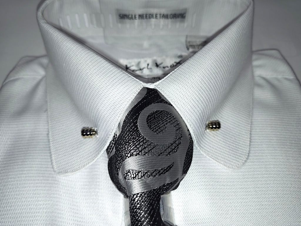 Mens White Eyelet Collar Bar French Cuff Dress Shirt + Tie Set Karl Knox SX4543